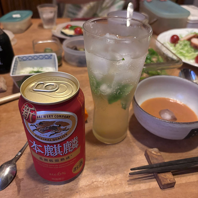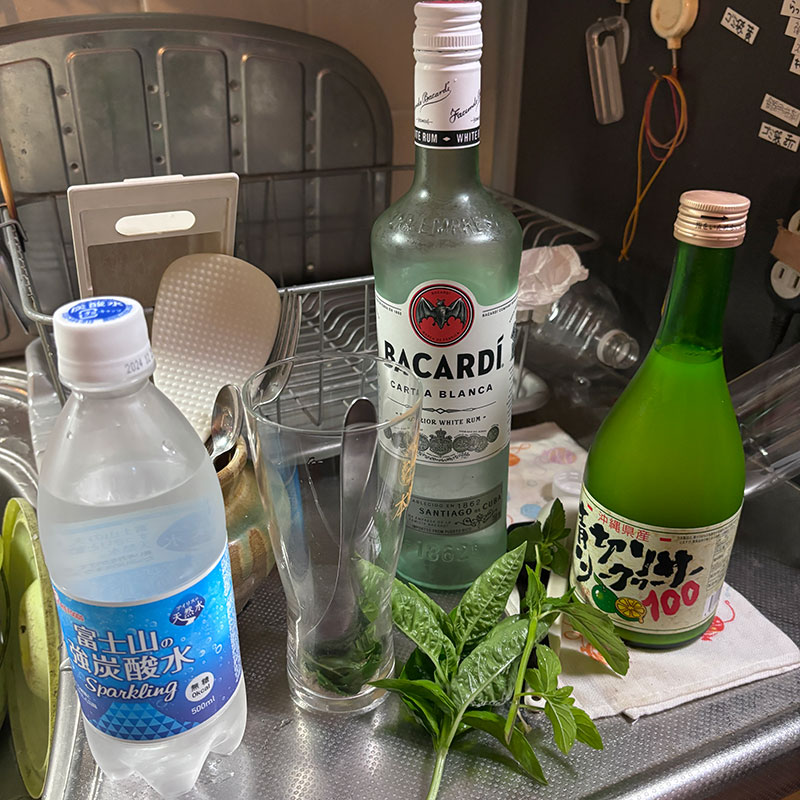 モヒートのために育ててるイエルバブエナ摘んできてバカルディラムと。