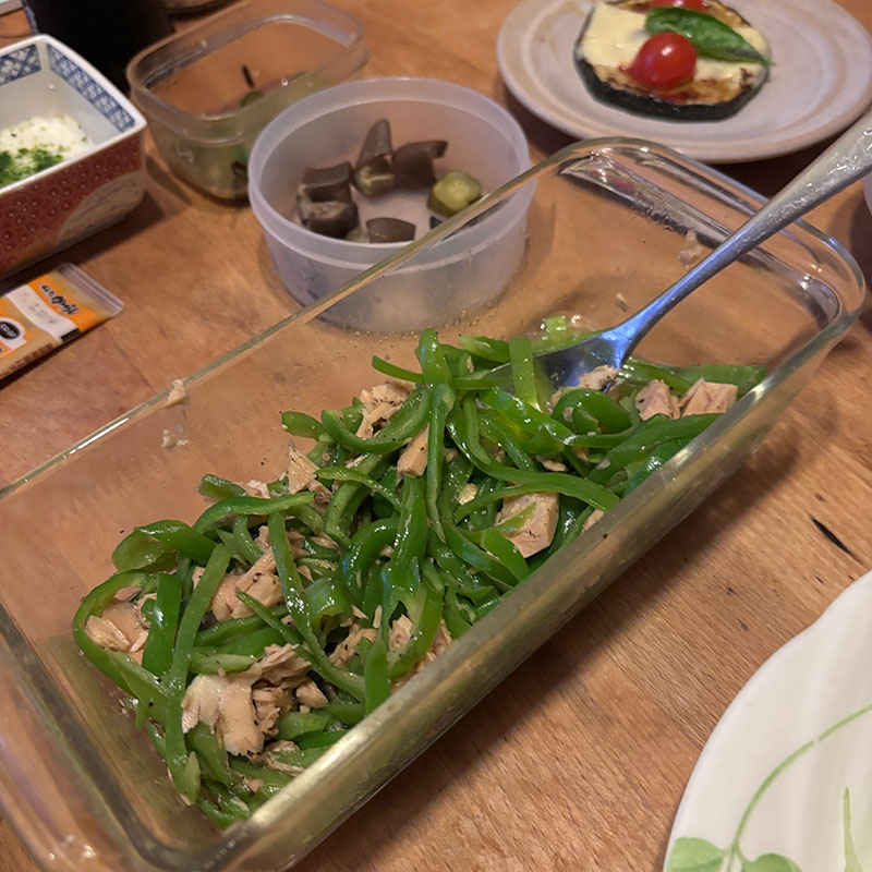 畑からピーマン摘んできて母親にもらった美味しいツナと