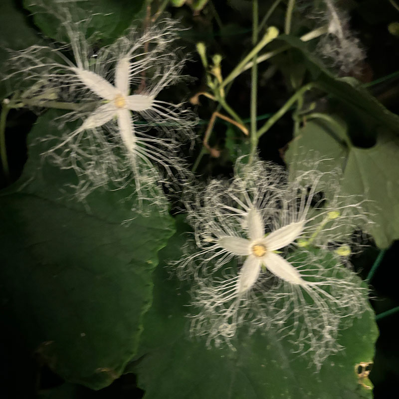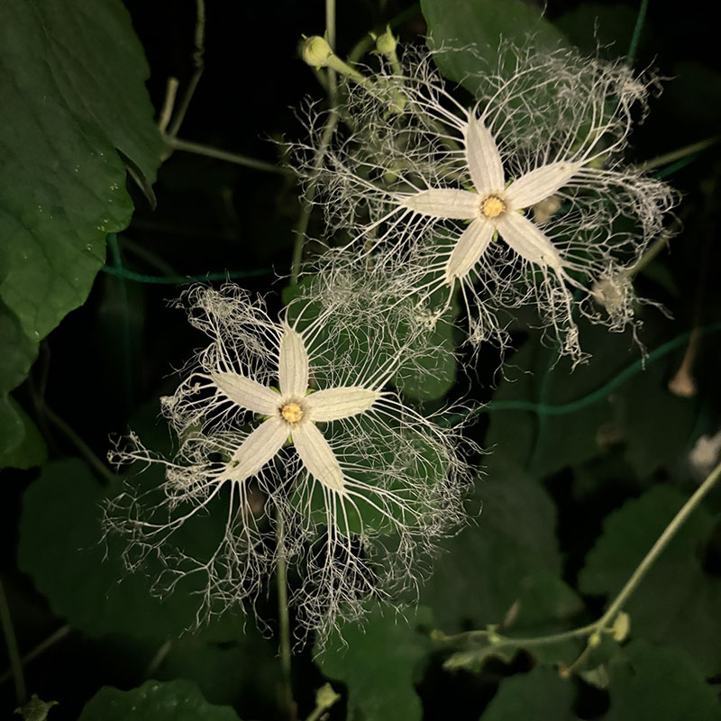 午後7時に開いていつまで咲いてるんだろう。夜、花開いても蝶や蜂もいないのに受粉どうするんだろうと思ったら、甘い匂いに誘われて蛾が来てくれるって友だちが教えてくれた。