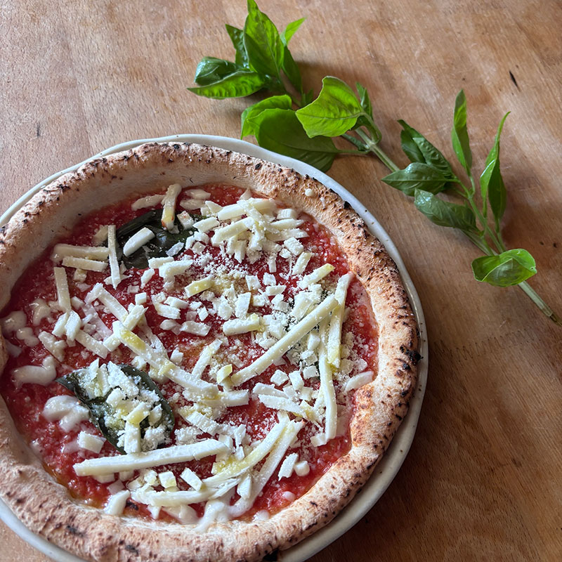 “世界ピッツァ選手権で2年連続優勝 da ISA(ダイーサ)山本尚徳シェフ監修 手伸ばし生地を楽しむ 金のマルゲリータ(一枚一枚手でのばし、歯切れのよい食感と小麦の香りを感じる生地に仕上げました。)”