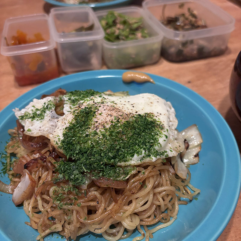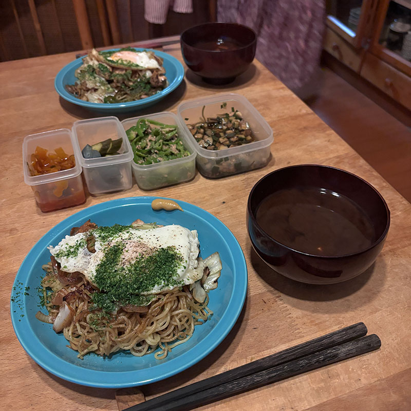 焼きそばの夕食。