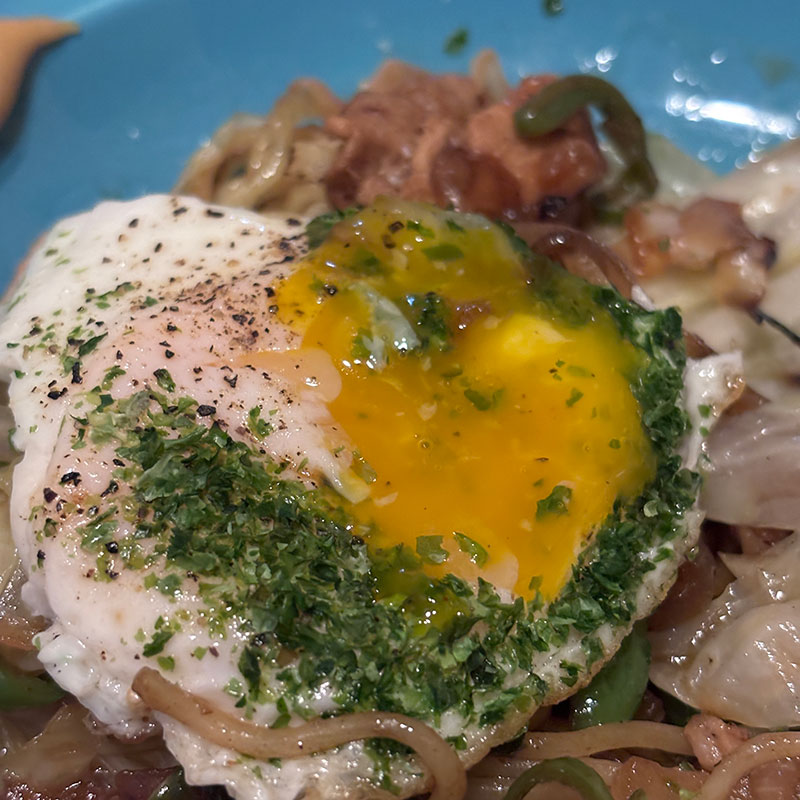 麺をしっかり焼くよ。焼きそばだから。