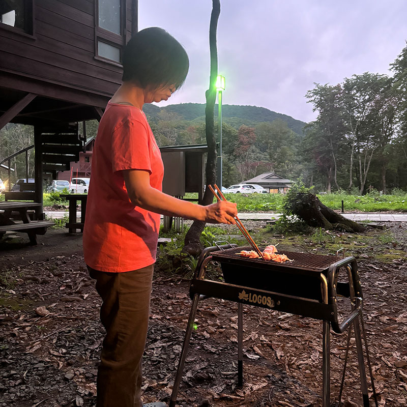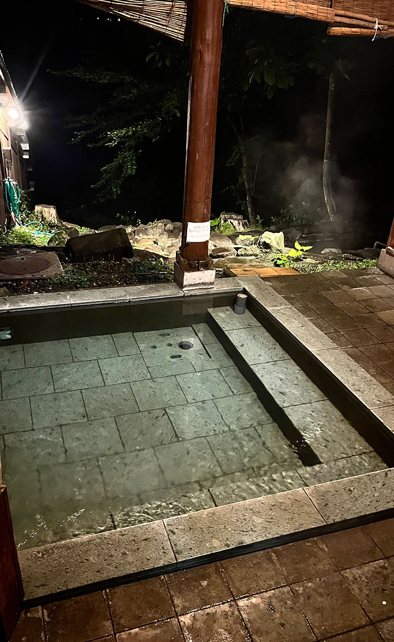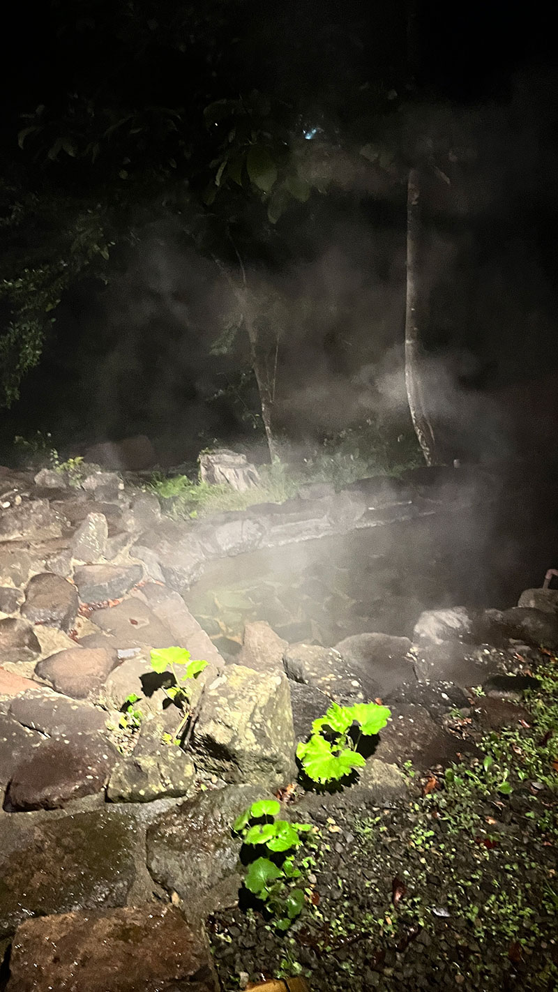 場所は秋田県湯沢市のとことん山キャンプ場。今は亡き愛犬小春とふたりと1匹でよくキャンプしていたキャンプ場。施設利用者は温泉入り放題なのが最大の魅力。テント設営して汗かいたら温泉。料理して火を使って汗かいたら温泉。寝る前に温泉。朝起きて温泉。屋根のかかったところにひとつ。その下に更に露天で2段風呂があって最下部の露天風呂は周りに生えている木に手が届くほどで山の中で温泉に入ってる気分。