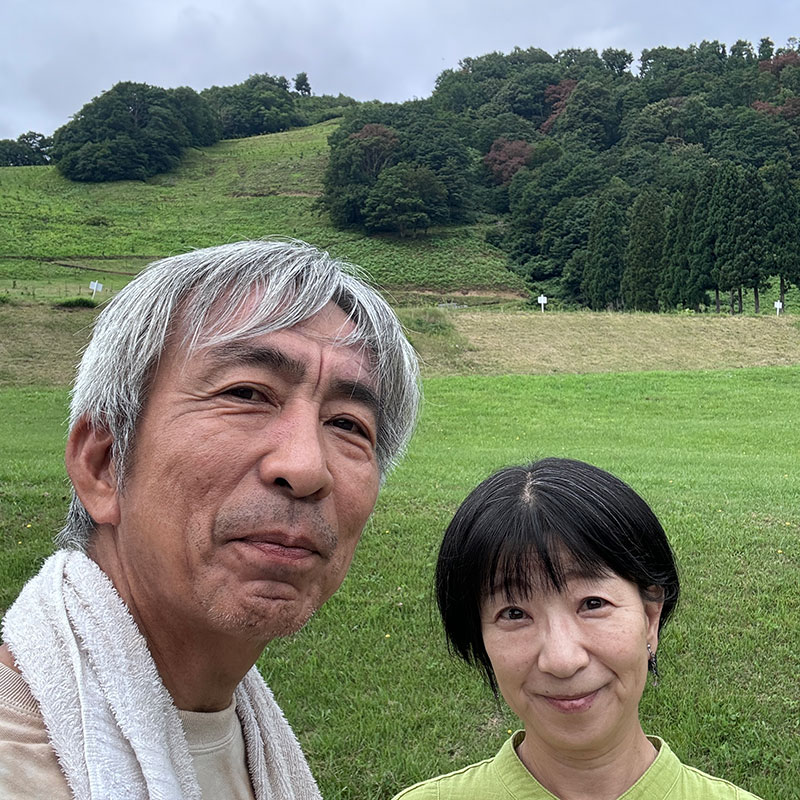 帰る前に愛犬小春とも登って走り降りた斜面をバックに記念写真。以前よく来ていた10年前はスキー場でもあったけどゲレンデだったところに植林がされているので専用のキャンプ場になったみたいだ。