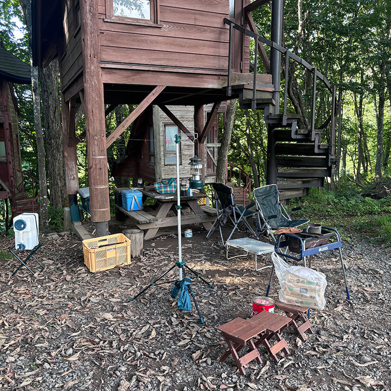 台風で雨の予報の中、連日いい天気で避暑に来たのに暑いくらいの時間もあった。夜中に屋根から大きな音。天井裏にケモノがいたらやだなぁと思うけど外観から察するに天井裏は無い構造。でも確かに生き物の音でなかなか眠れず。その後、音をたてて雨が降った。雨の中の撤収は辛いなぁと考えてさらに眠れなくなった。帰る時に管理棟で聞いたら多分ムササビが木から屋根に飛び降りた音だろうって。