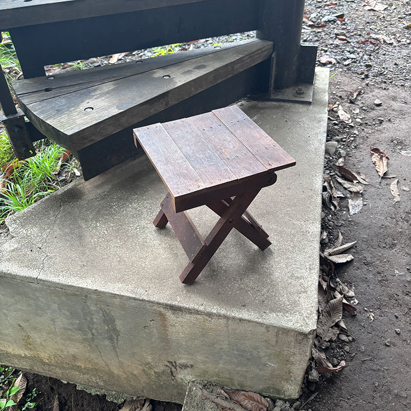 更にキャンプで何かあった時にこの箱を開ければ解決する選びに選んだツールをしまってあるボックスには折りたたみの小さな木製の椅子を3つ入れてある。