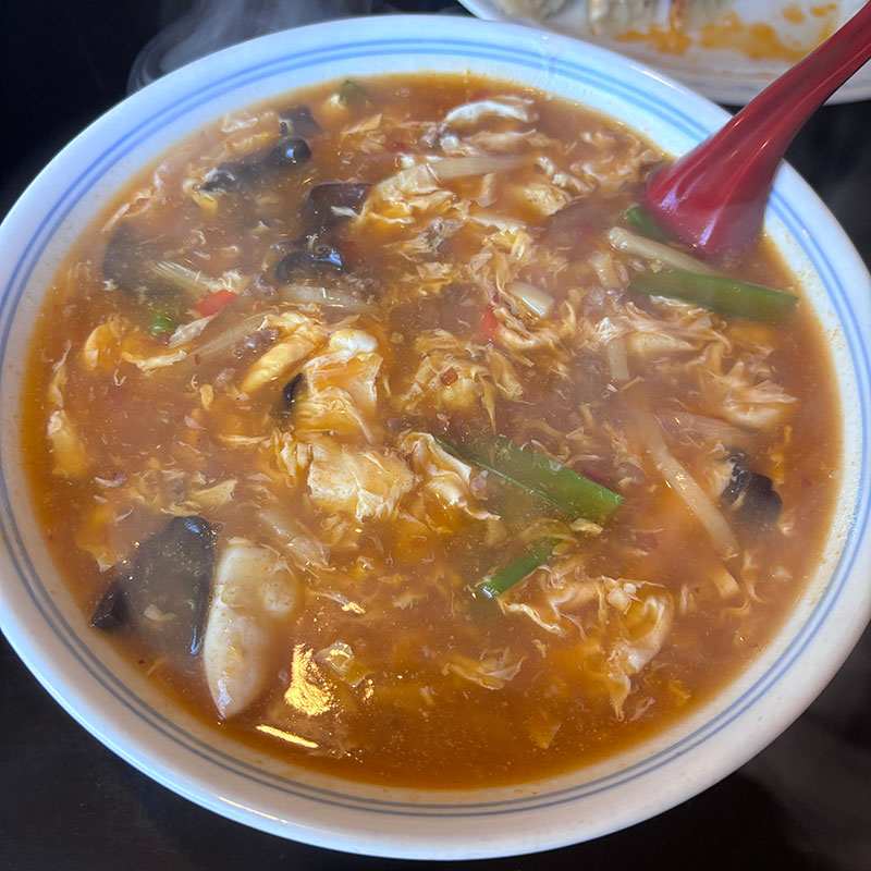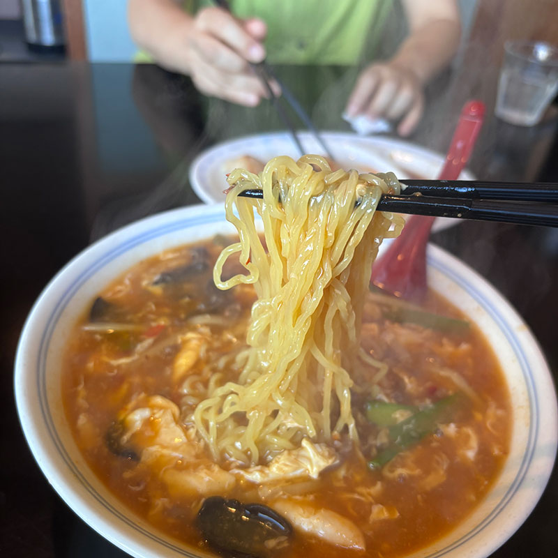 酸辣湯麺 800円。定食が滅茶滅茶安くてかつ美味しそうで悩んだんだけど暑くて酸っぱいラーメン食べたくなってこれ。