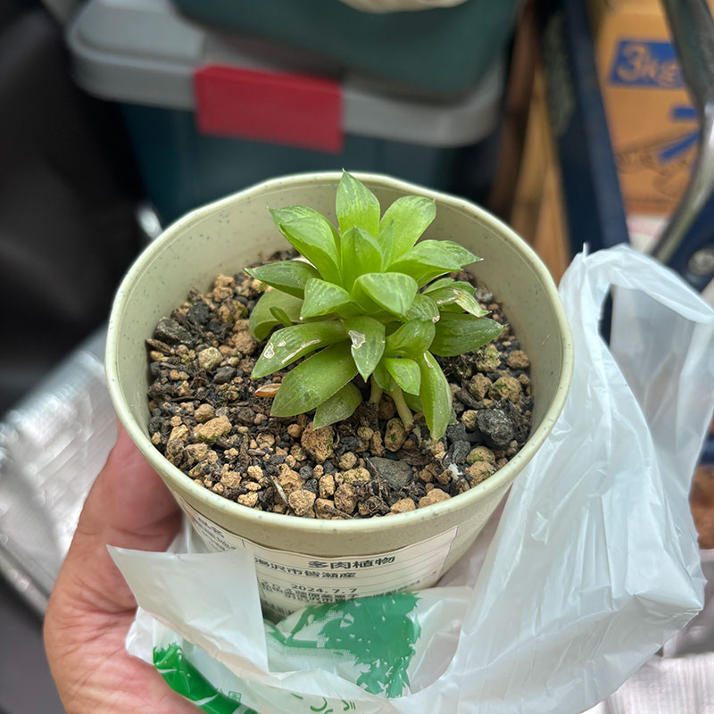 そうそう同じ店でハオルチアオブツーサのポット売ってたので買ってきた。だってこの大きさで透き通っていて250円。ゼロひとつつけ忘れてないか聞いて買ったよ・笑