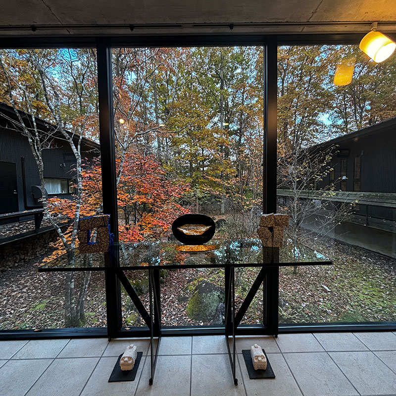 搬入時にはほとんど紅葉していなかったギャラリー周りの木々の葉も今日はカラフルに色を変えていました。