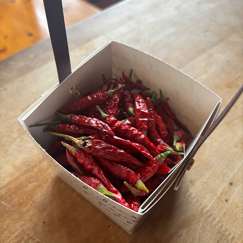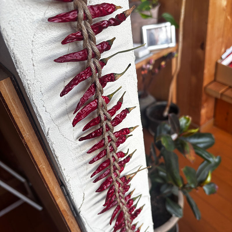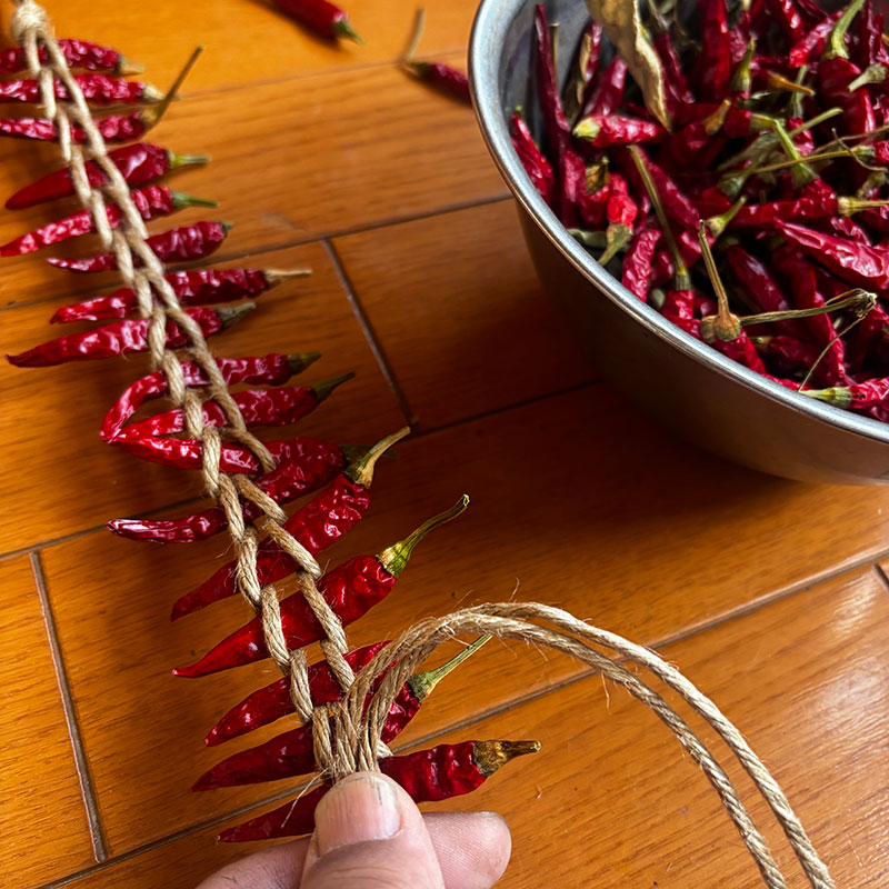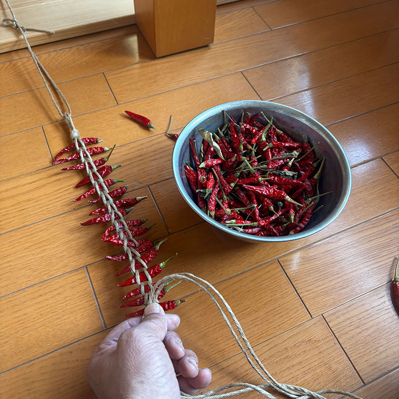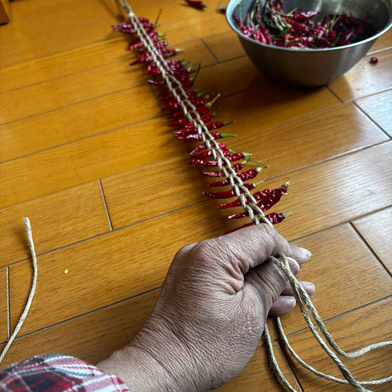 赤唐辛子を編む