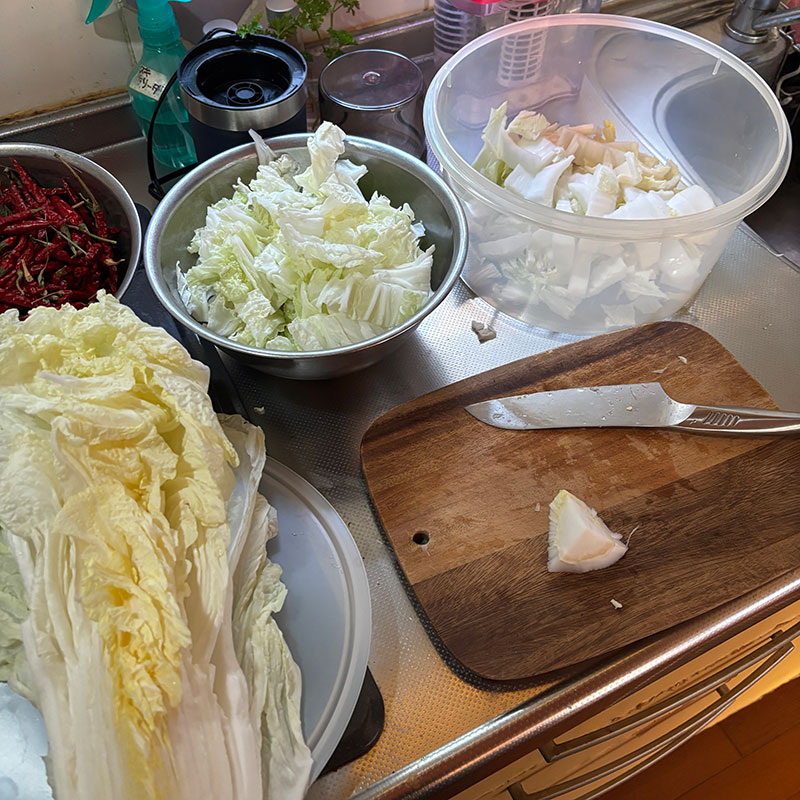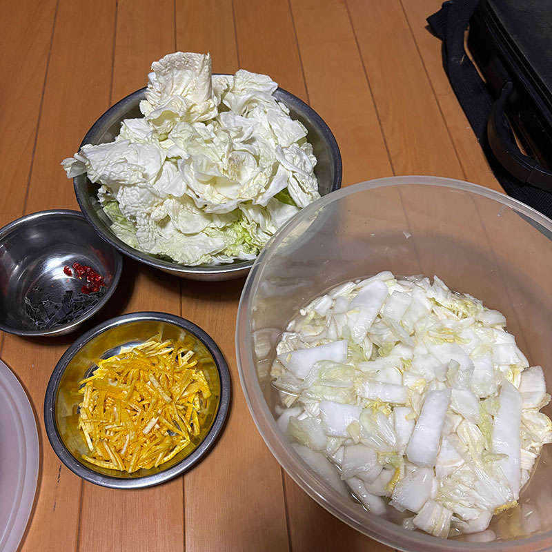 もうひとつはいただいた大きな白菜で柚子白菜漬け仕込む。