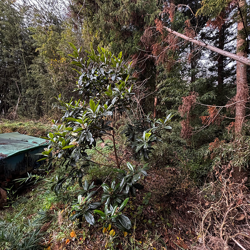 4年前に近所の方に若木をいただいて家の裏の土手に植えた枇杷。