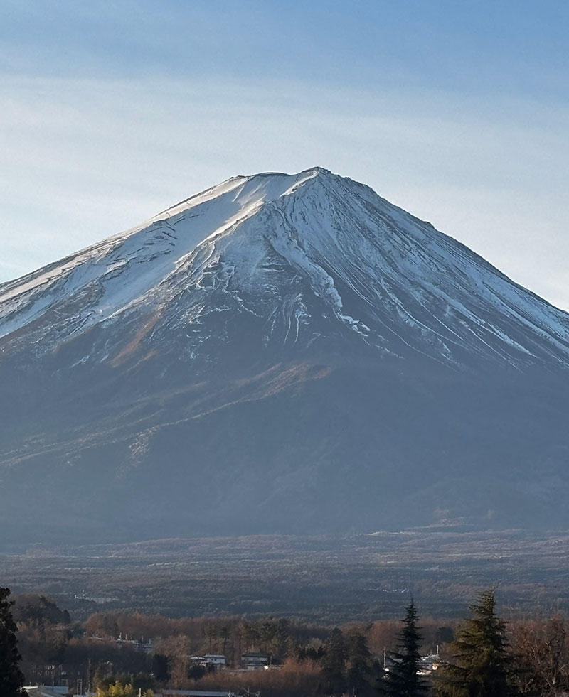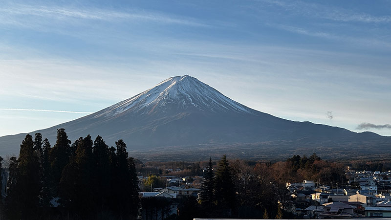 窓から大きな富士山が見える。