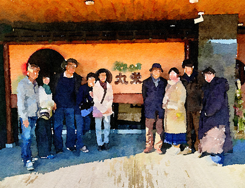 楽しい時間でした。旅館の前で記念撮影。