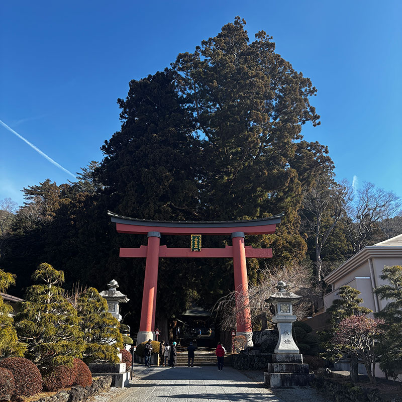 河口淺間神社で心静かに手を合わせた。
