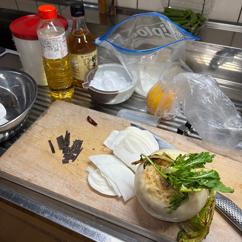 今宵の箸休めに千枚漬け仕込む。柚子があったので柚子皮も。