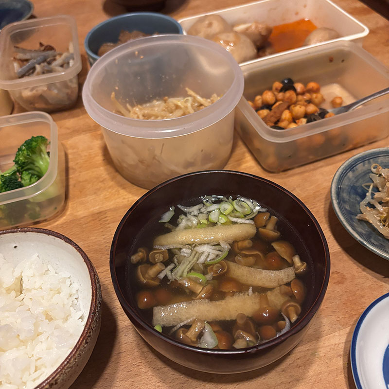 なめこのお吸い物作った。昆布と鰹節でで出汁を取る時鰹節は漉さないでフライパンで炒ってから粉々にして入れてそのまま飲んでしまう。粉々にしないと口当たりが悪いので粉々にするんだけど炒らないと粉々にならないから手間だなぁと思っていた。