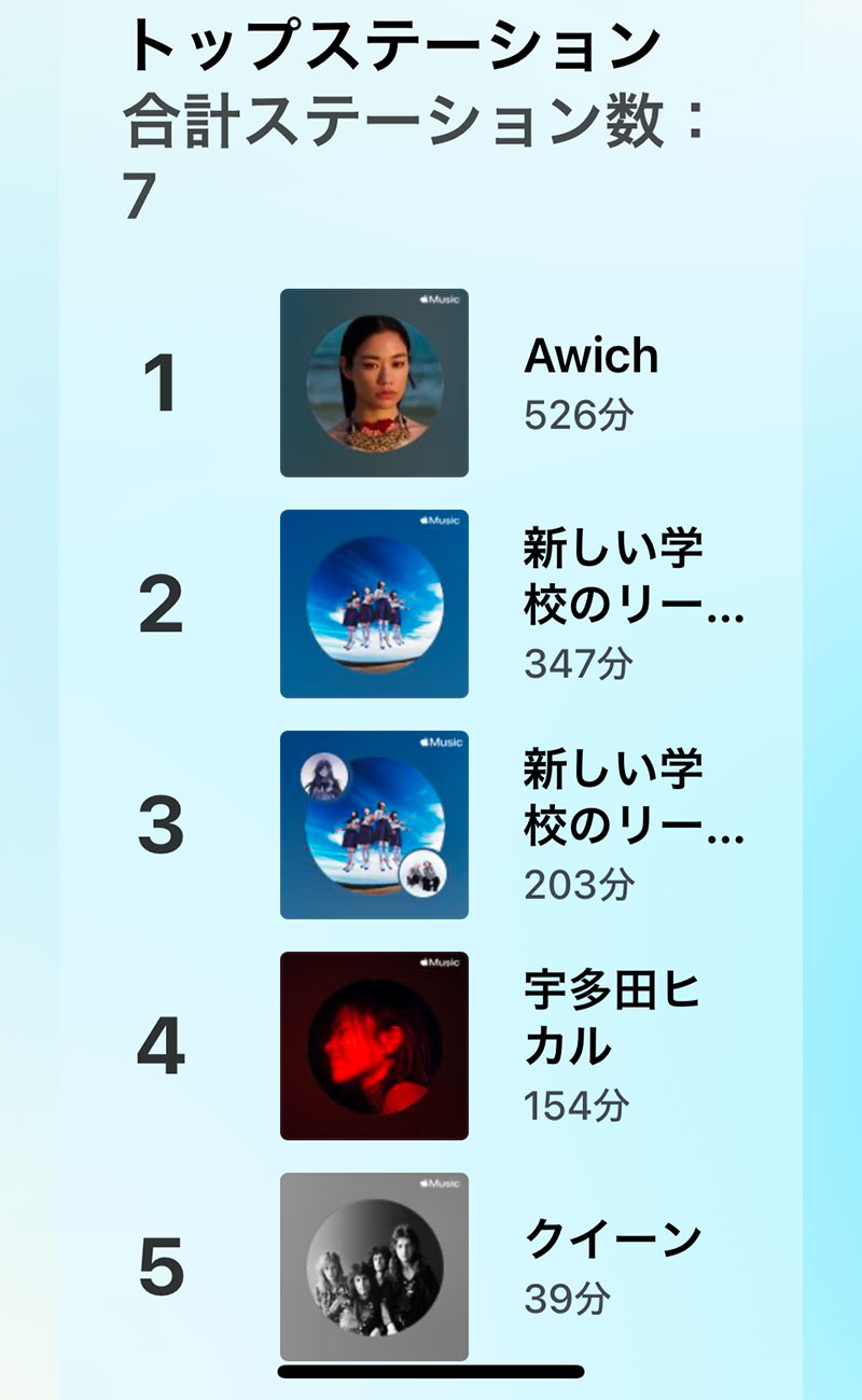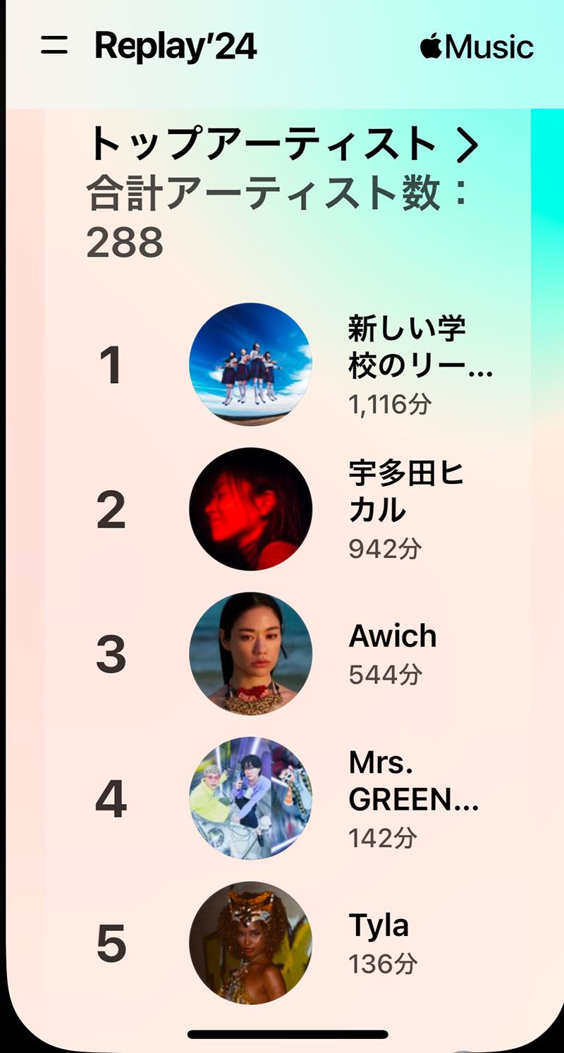 今年自分がApple Musicで聴いた曲をまとめてくれてたw