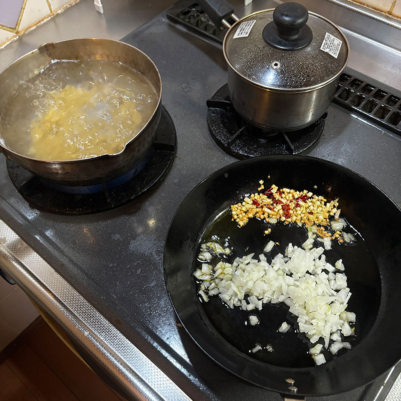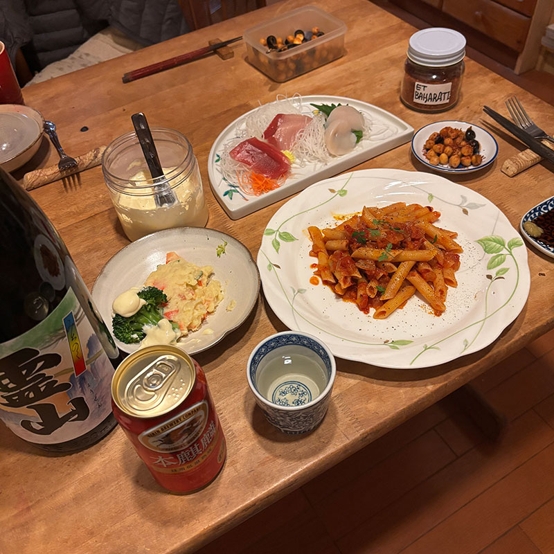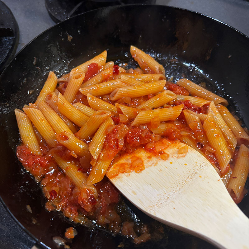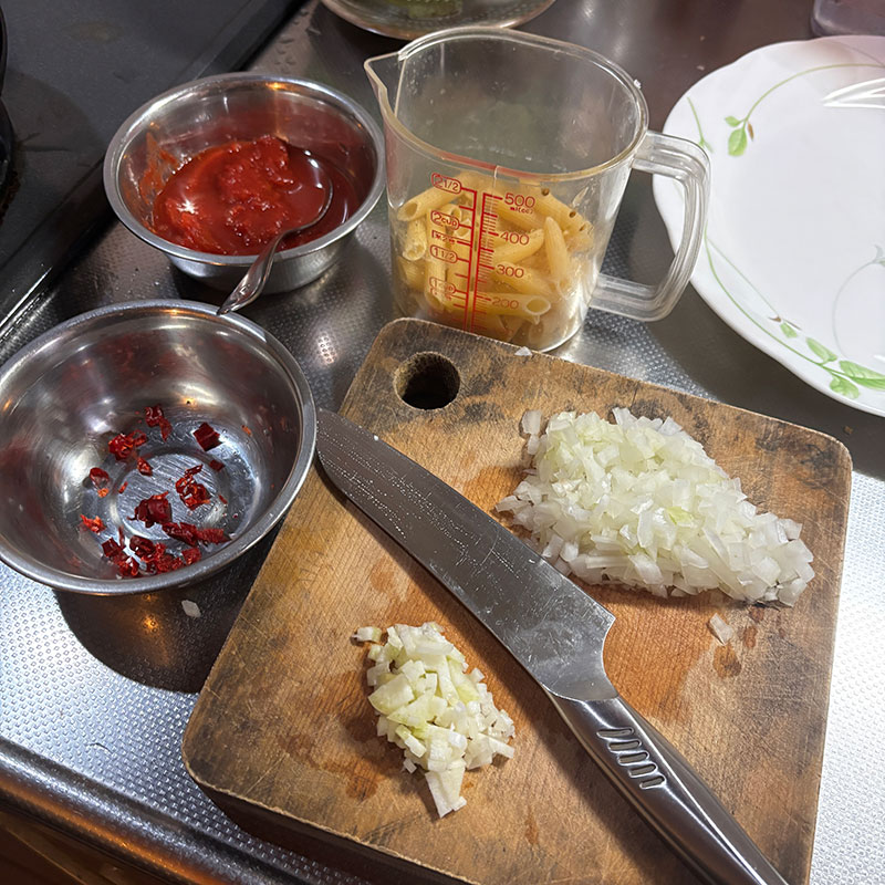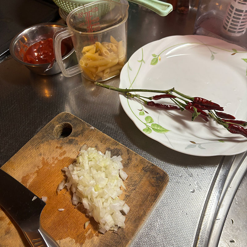 しっかり辛いアラビアータだけど玉ねぎの甘みをしっかり引き出したのでバランス取れた。