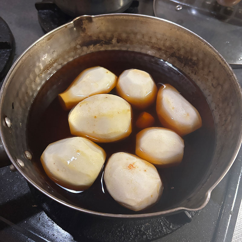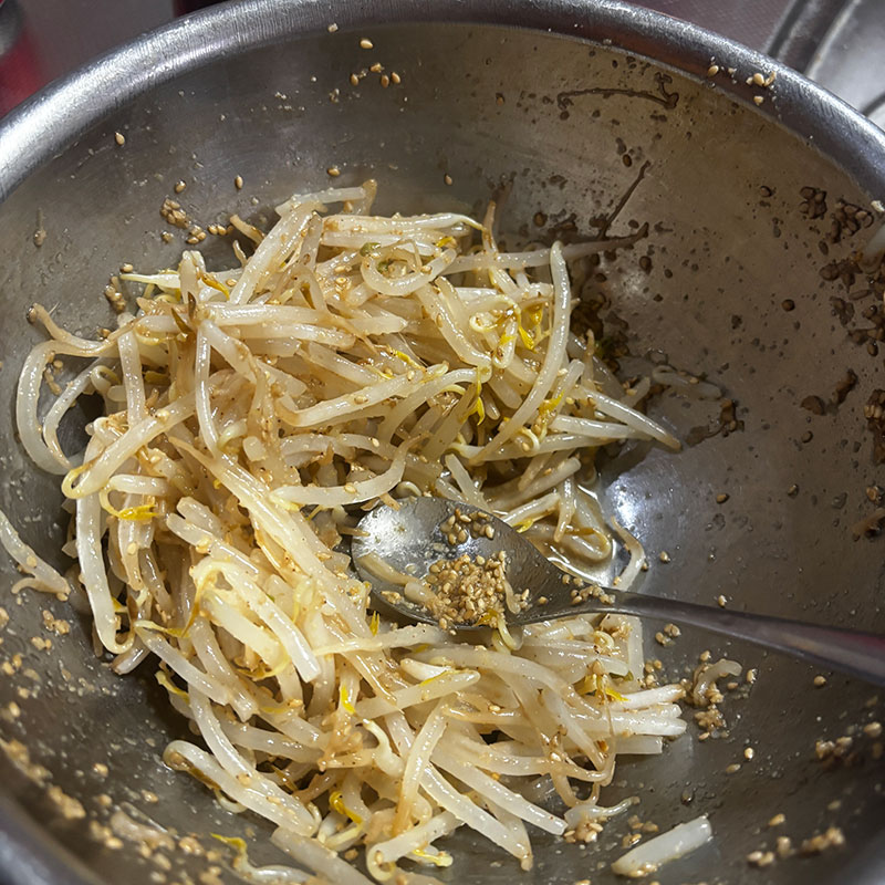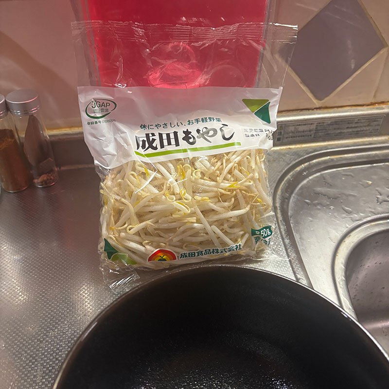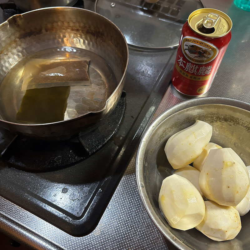 一杯飲んだ後、里芋煮てもやしをナムルに。