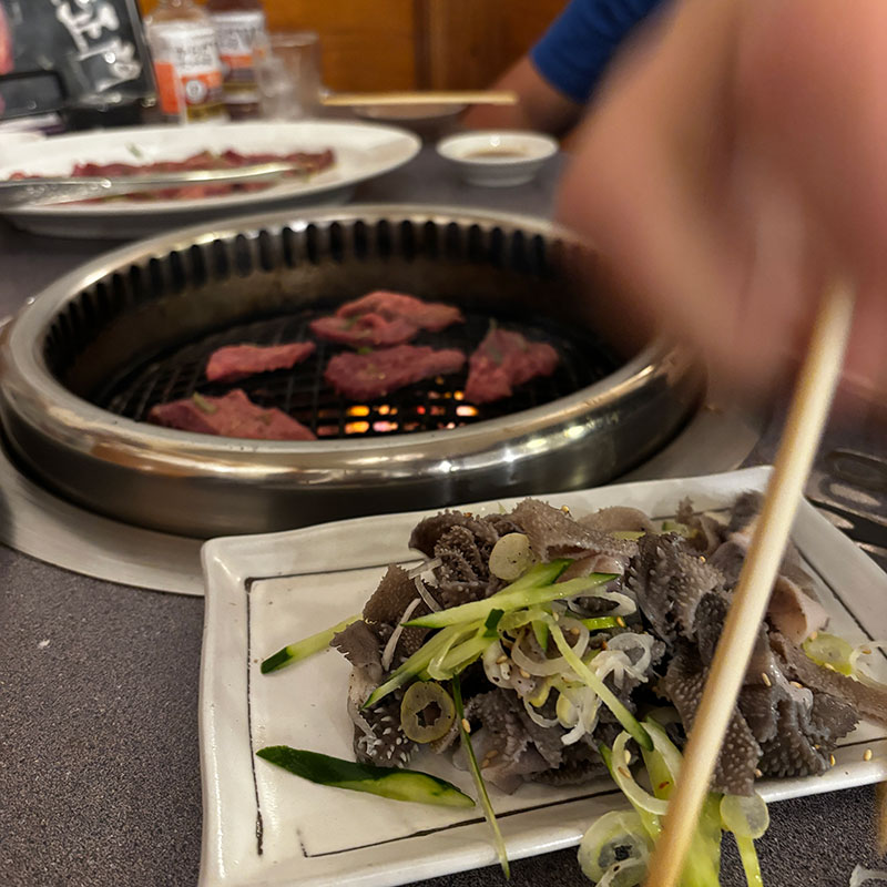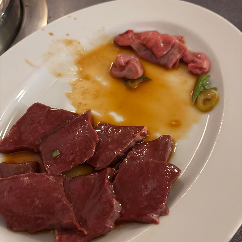 焼き肉 雲の中の小さな空。 天使の梯子。 焼肉ご馳走していただいた。 若者たちとなので いつものペースと全然違う。 怒涛の勢いで山のように 頼んで飲んで気がつけば1時間で満腹になっていた・笑 カルビはもちろんホルモンも旨い。 せんまいは絶品だった。 いや、美味かった。 ごちそうさまでした。 2024年12月3日 | コメントはまだありません | カテゴリー: おいしい