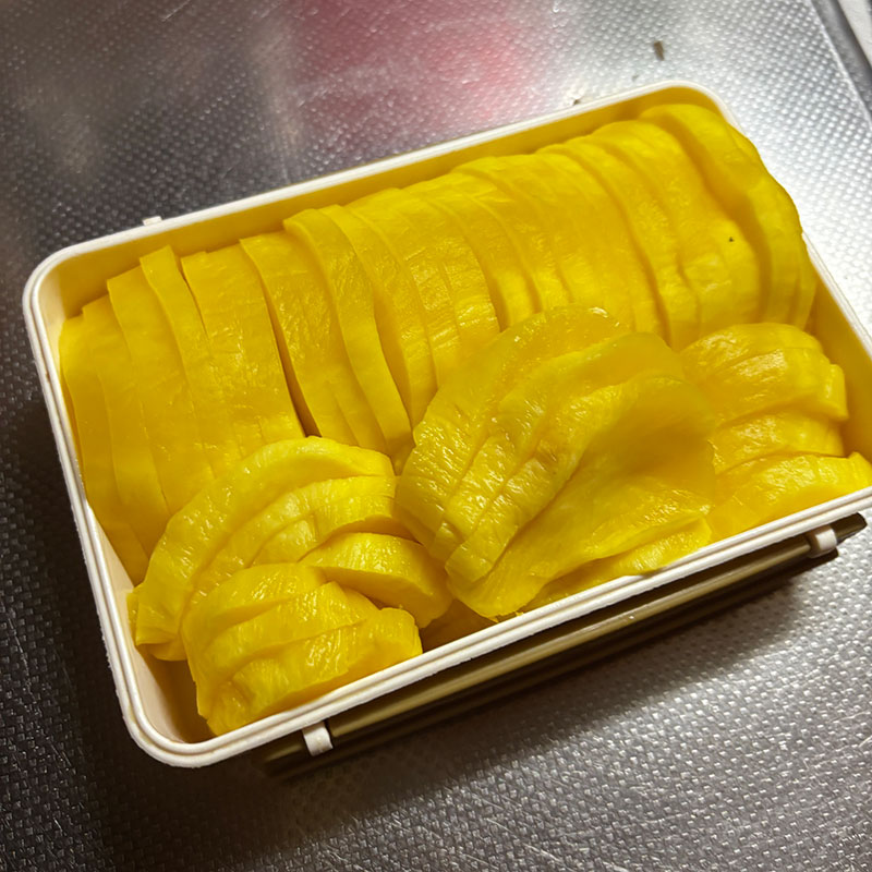 種種種 今朝の氷と霜。 本格的に寒くなってきた。 玄関開けると いきなりデカいの立ってます。 種付き過ぎ。 この種、茎に膨大な量ついてて 布に付くとなかなか取れない厄介な奴。 たくあんいただいた。でかい。 目の前で樽から出してきて。 車の中はまだ、たくあん(糠)の臭いが充満してる・苦笑 遅い夕食。家に帰ってパスタ茹でればすぐ食べられるように昨晩ミートソース仕込んでおいた。 霜が降りたけど畑のパセリがまだ食べられる。たっぷり振りかけて。 2024年12月19日 | コメントはまだありません | カテゴリー: 三日坊主日記