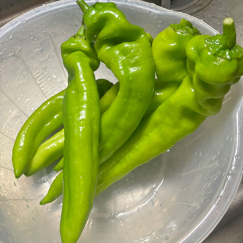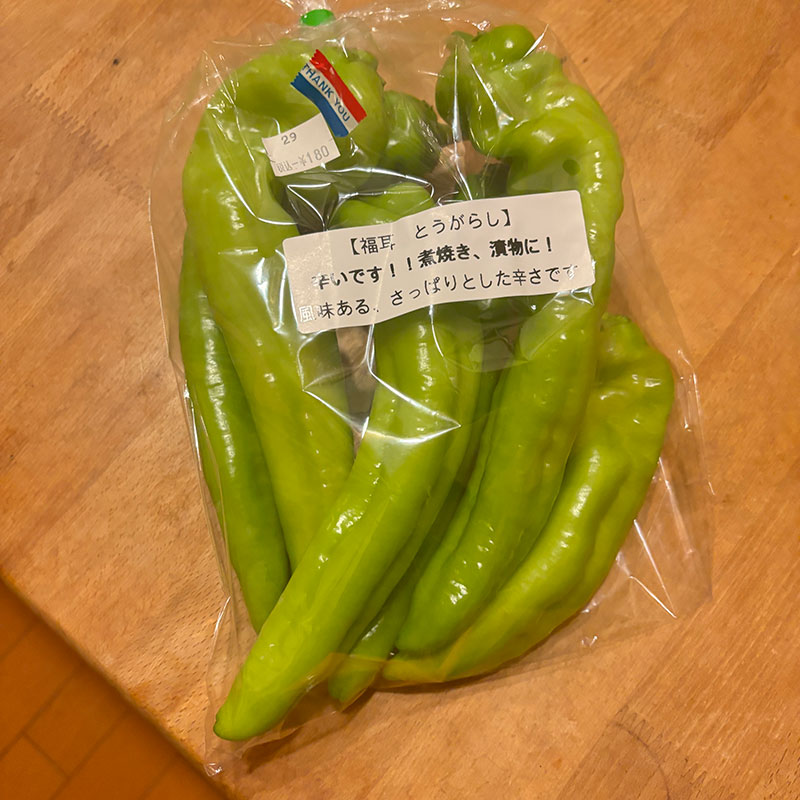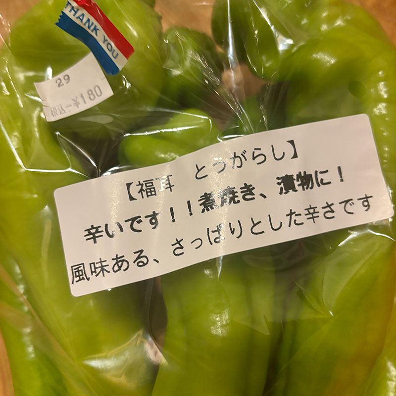 畑で大きな青唐辛子を育てられないので四国から今年もメルカリで購入。明日、届くんだけど思い出した!!!夏にカミさんと山形県に肉そば食べに行って温泉にも入った時にそこの産直コーナーで福耳唐辛子安く売ってた。