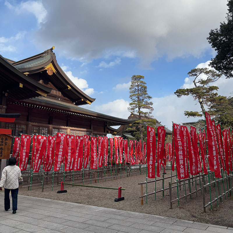 たくさんの赤いのぼりがはためいてる。