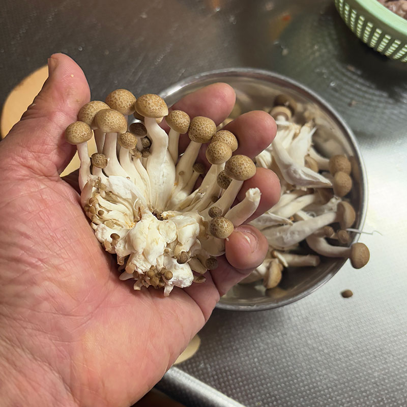 しめじもそっと抜いていけば石づきだけ残る。