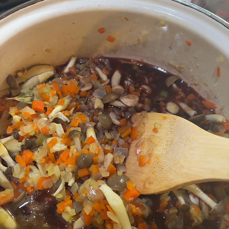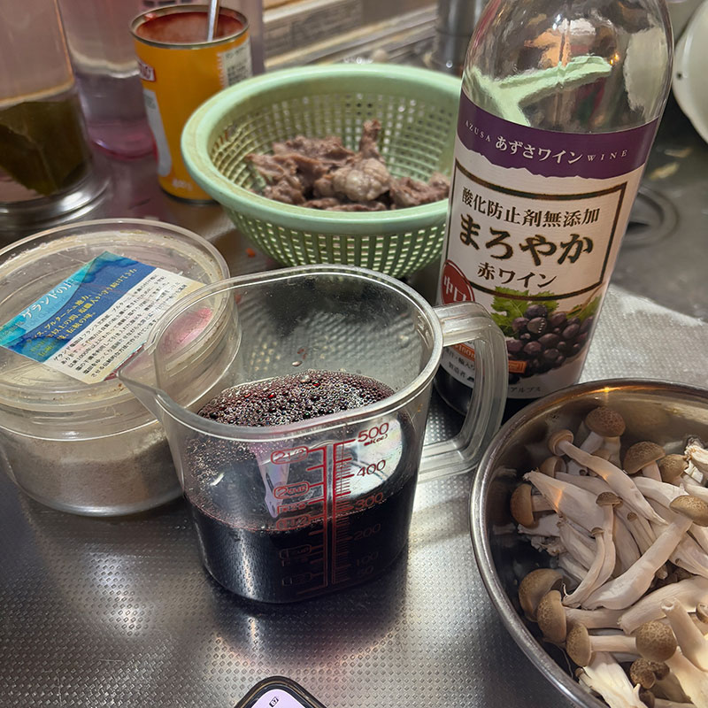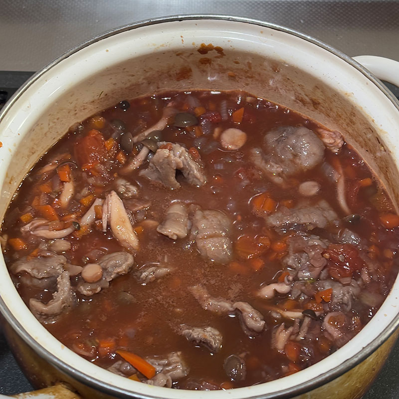 牛すじ肉の赤ワイン煮仕込む。セロリたっぷり。