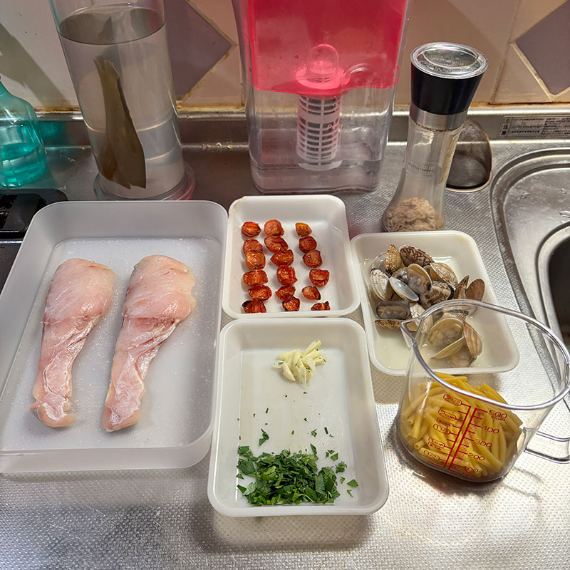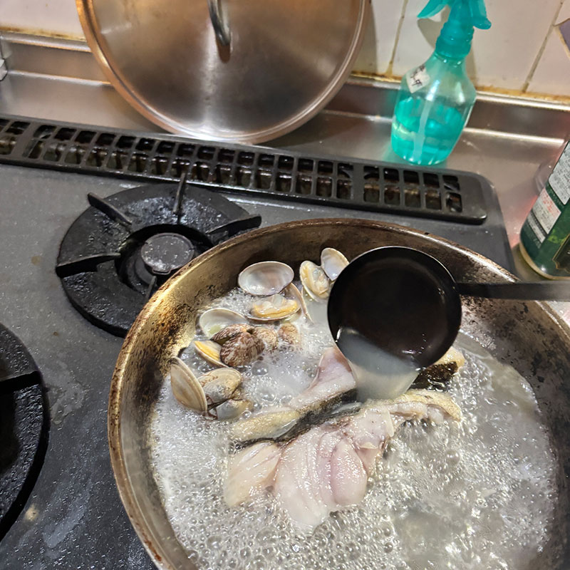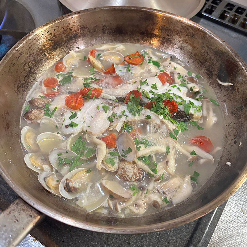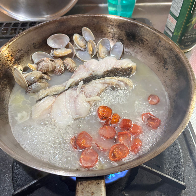 小さくても白身魚まるまる一匹で作りたかったけど売ってなかった。そして今、あさりが本当に買えない。先日もアクアパッツァ作った時に地元のスーパー4軒回ったけど売ってなかった。しめじはあっても。今日も状況は同じ。夏の異常な暑さで死んだのかね、国産のあさり。仕方ない、買いたくなかったけど中国の冷凍の買ってきた。