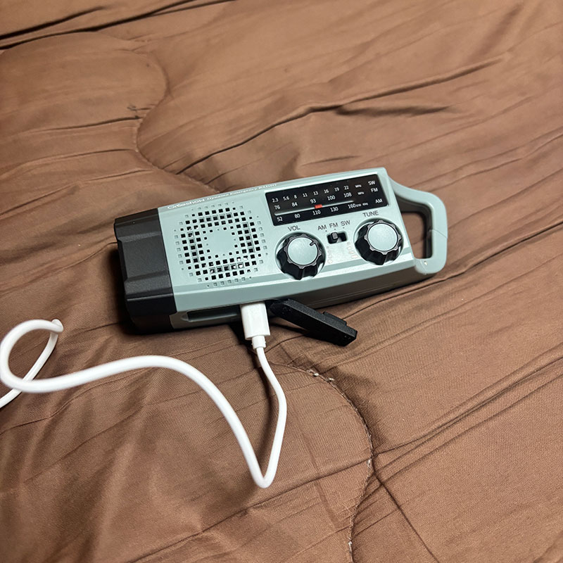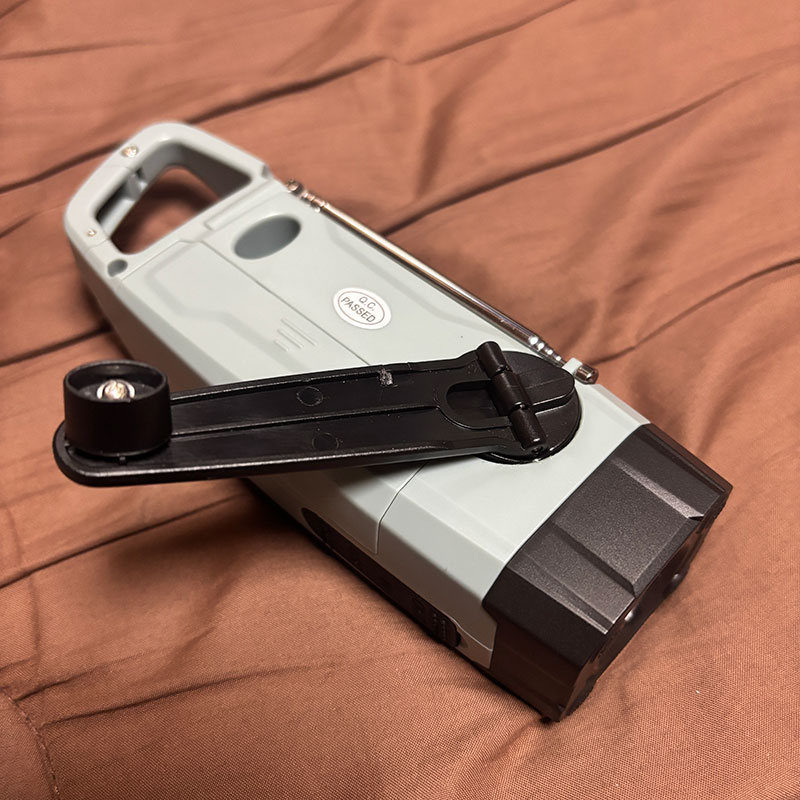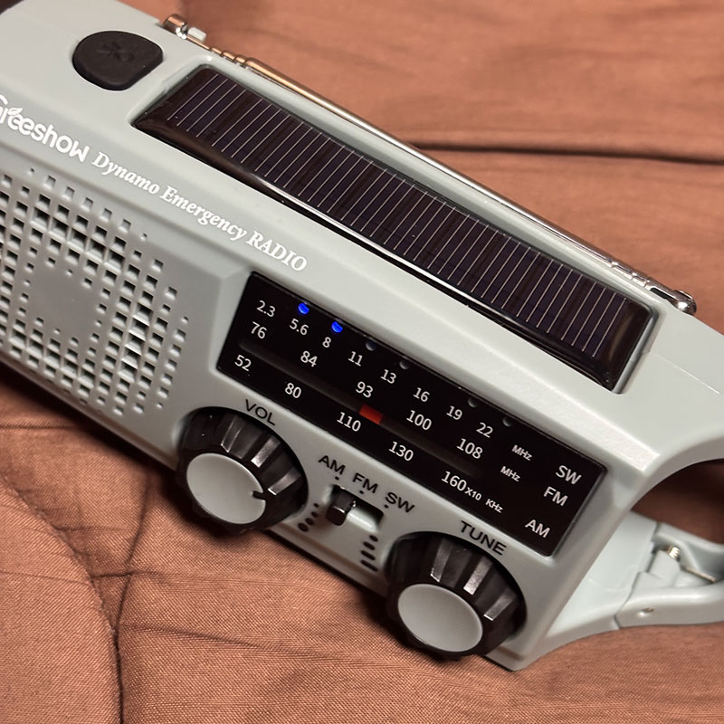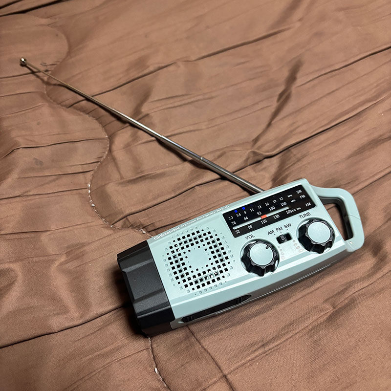 更に手回し充電機能がついているので万が一の際はこれで充電できる。ラジオくらいなら手回しでも充分。東日本大震災の時は停電で断水した中ラジオをずっと付けっ放しにしていた。手回し充電とラジオは災害の時の心強い味方だ。