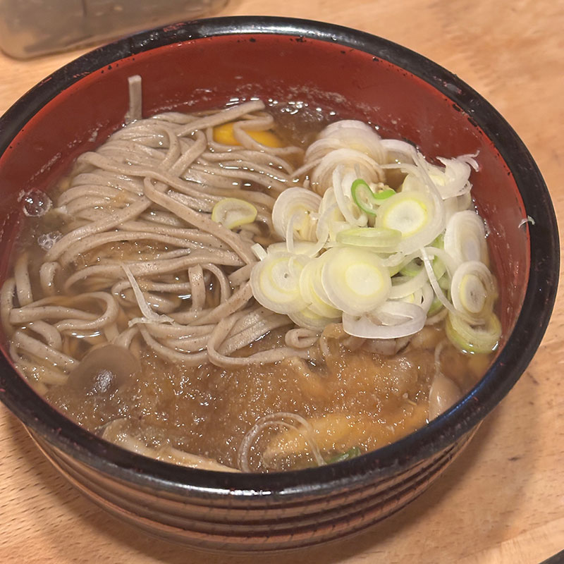 冷凍しめじ。長ネギ山盛り。蕎麦。
