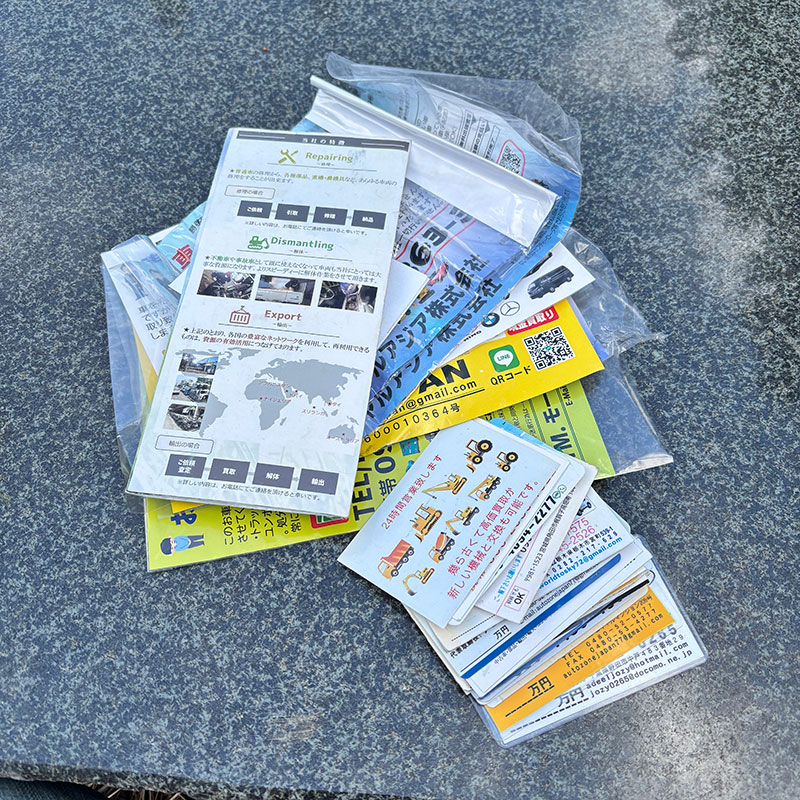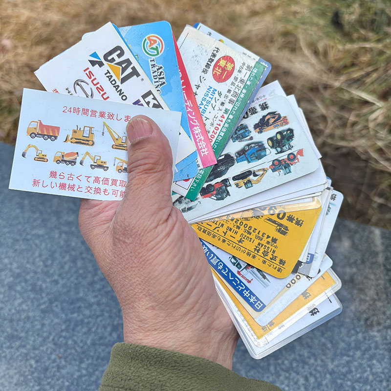 でも国道から仕事場のトラックが見えることもあって買い取り、転売業者が欲しくてたまらなかった様で売ってくださいの名刺やチラシが溜まる一方。