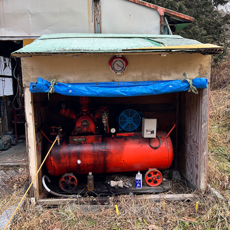 仕事に使ってるコンプレッサーは2万で買うよ、と言うので壊れたらお願いすることにした。それに石彫りも後10年は続けられないだろうから廃業する時の仕事場、