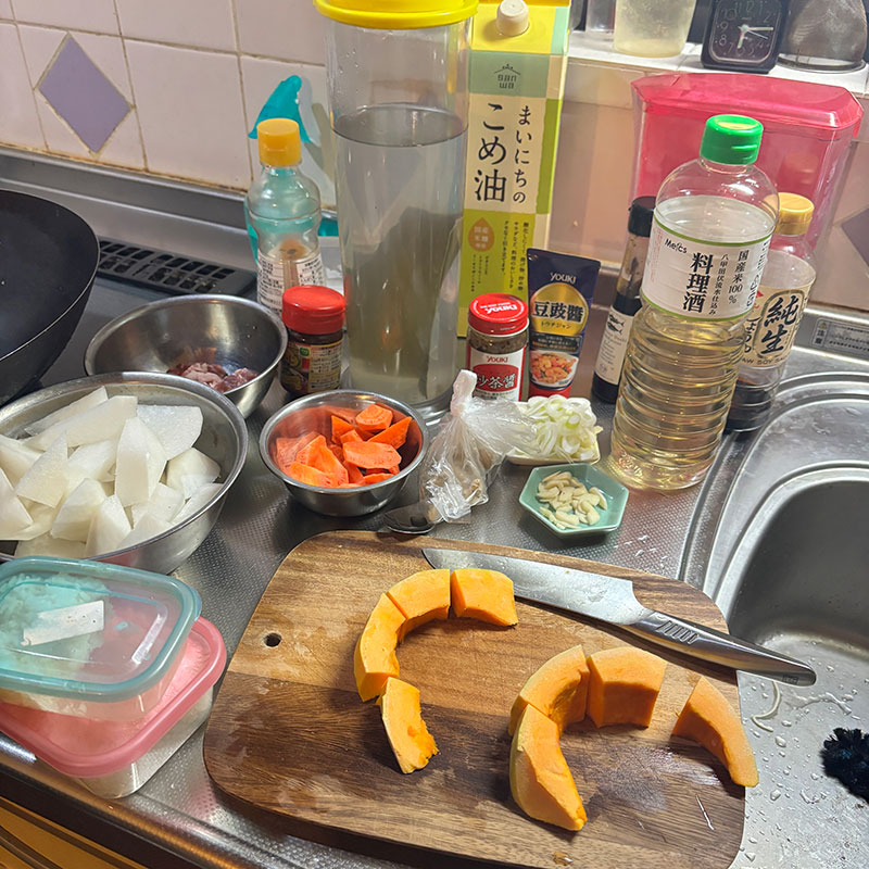 夕食。寒さに当たって甘くなってる旬の大根と