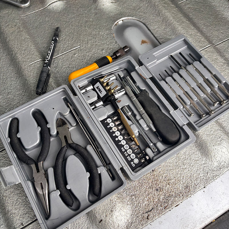 狭くて小さな箇所のナット外すのに何かのおまけでもらった工具セットが役に立った。
