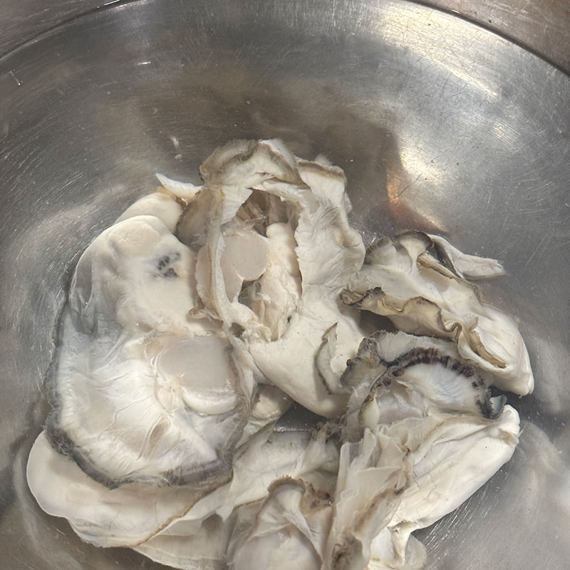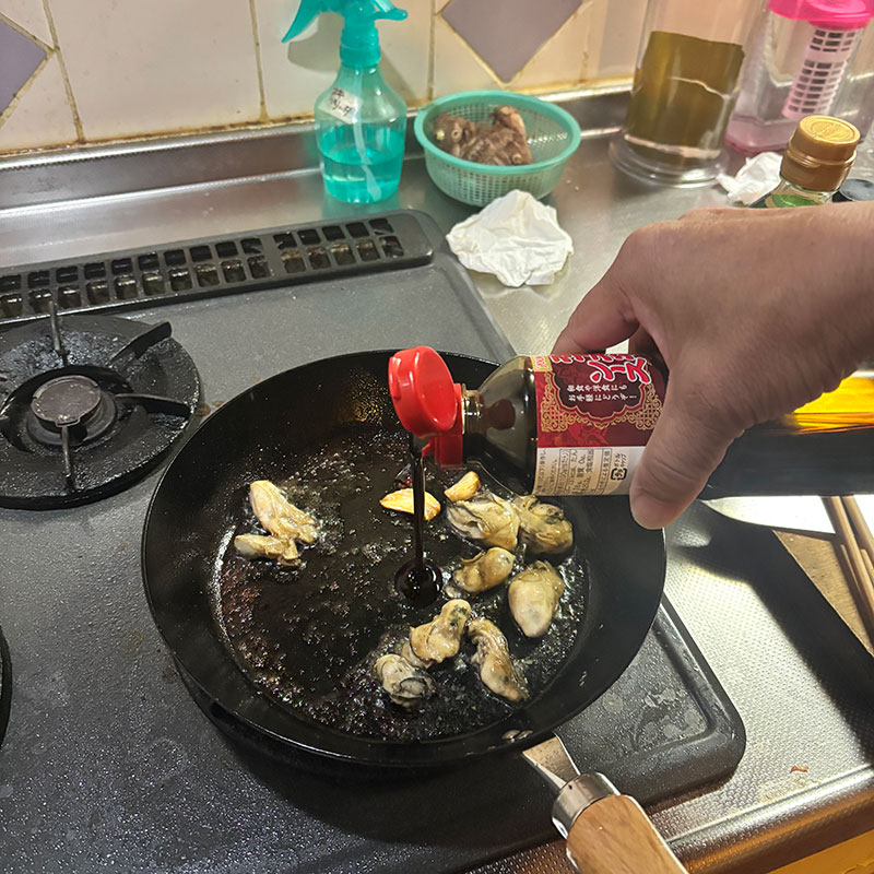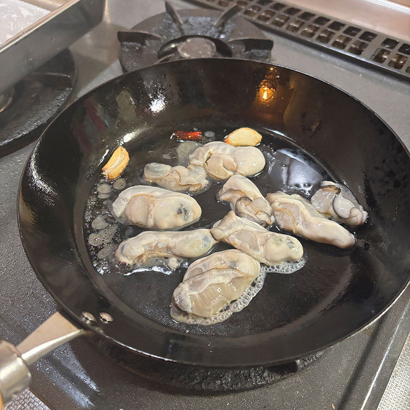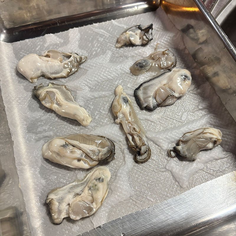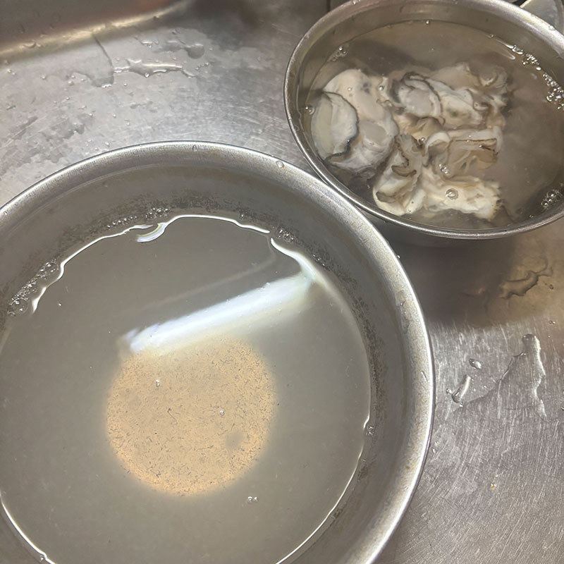牡蠣はすごく汚れてるから3%塩水でよく洗って3%塩水に浸ける。