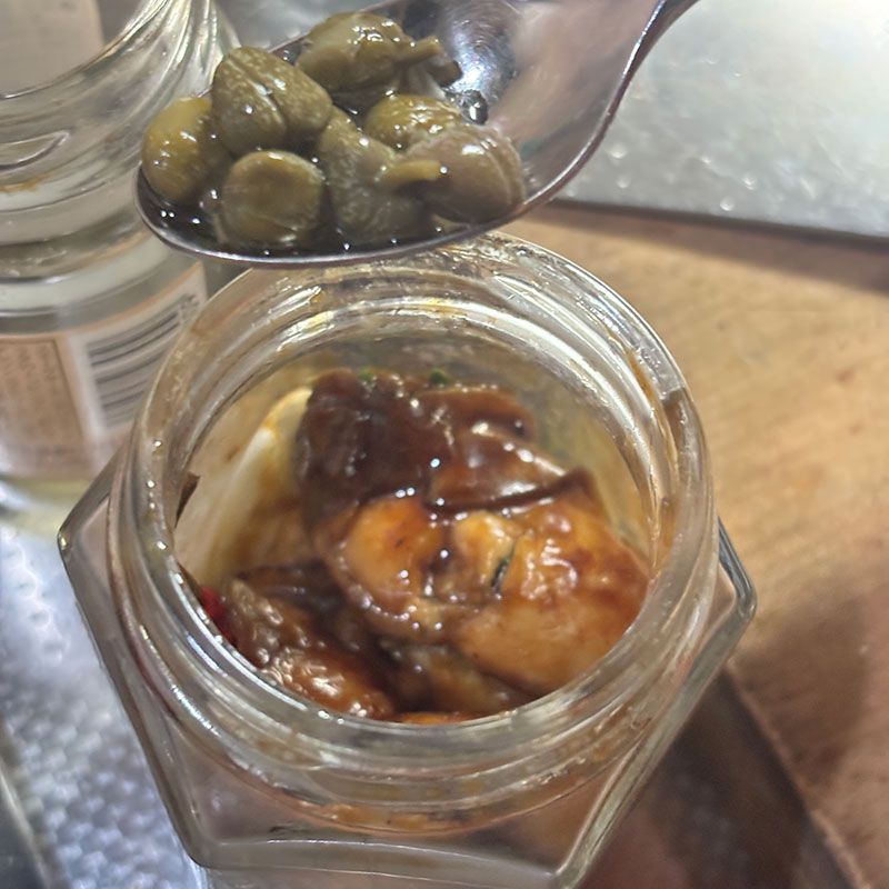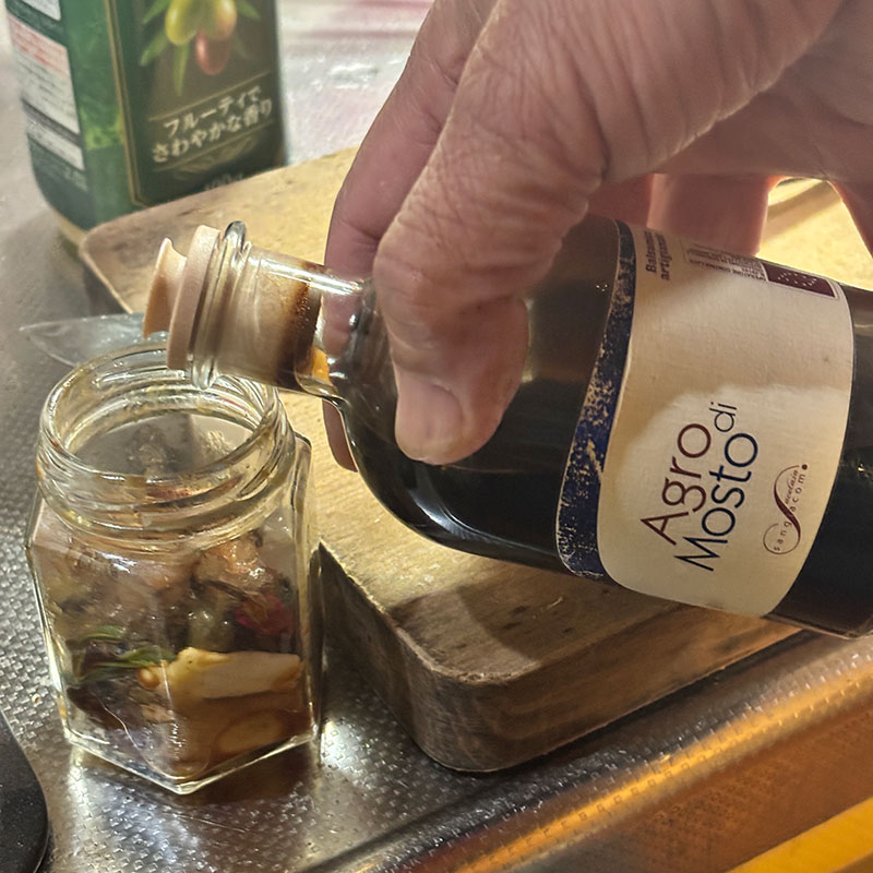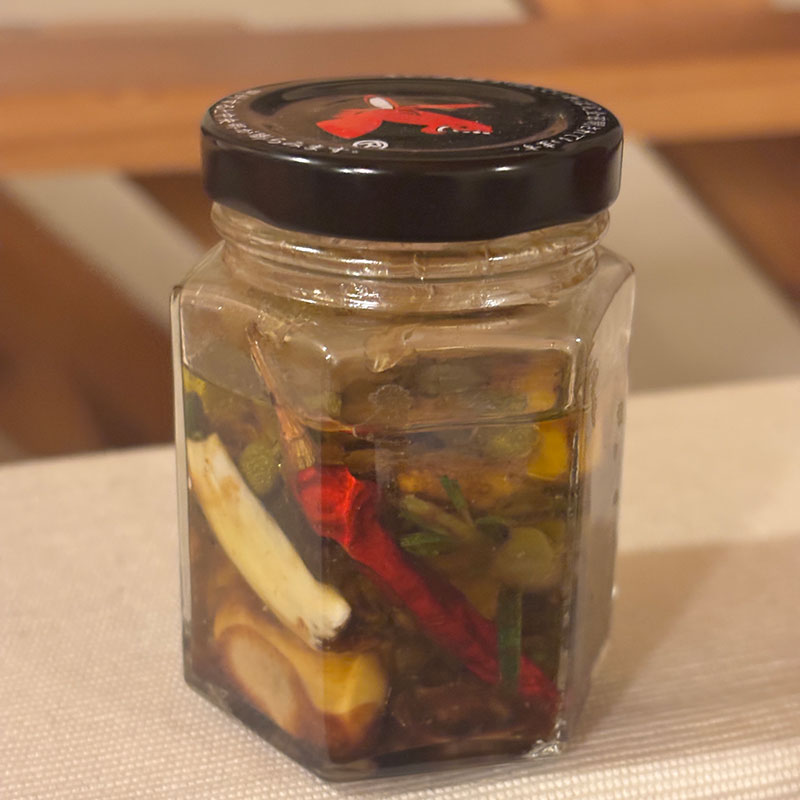 にんにくと畑で作った赤唐辛子とオリーブ油で