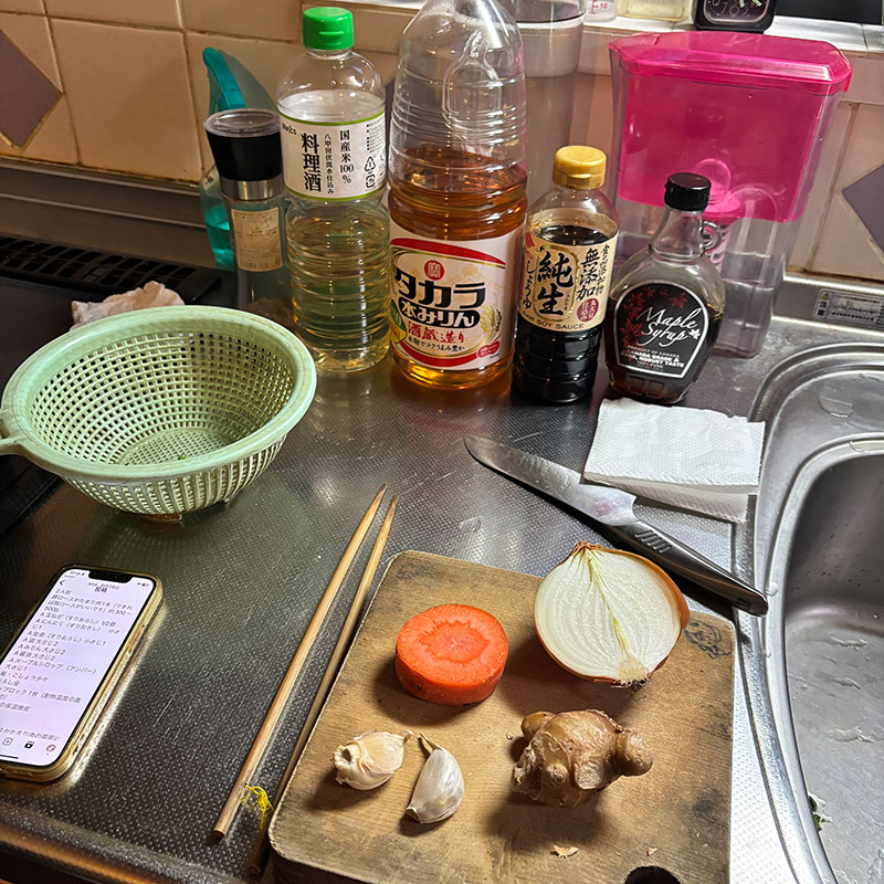 このドレッシング本当に美味しいので、玉ねぎ、にんじん、更ににんにく、生姜を