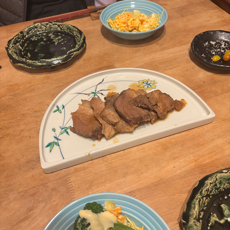 煮豚のソースにメープルシロップ加えるなんて思いつかないよね。すごい。でも塩っぱさを引き立てて旨み増してる。
