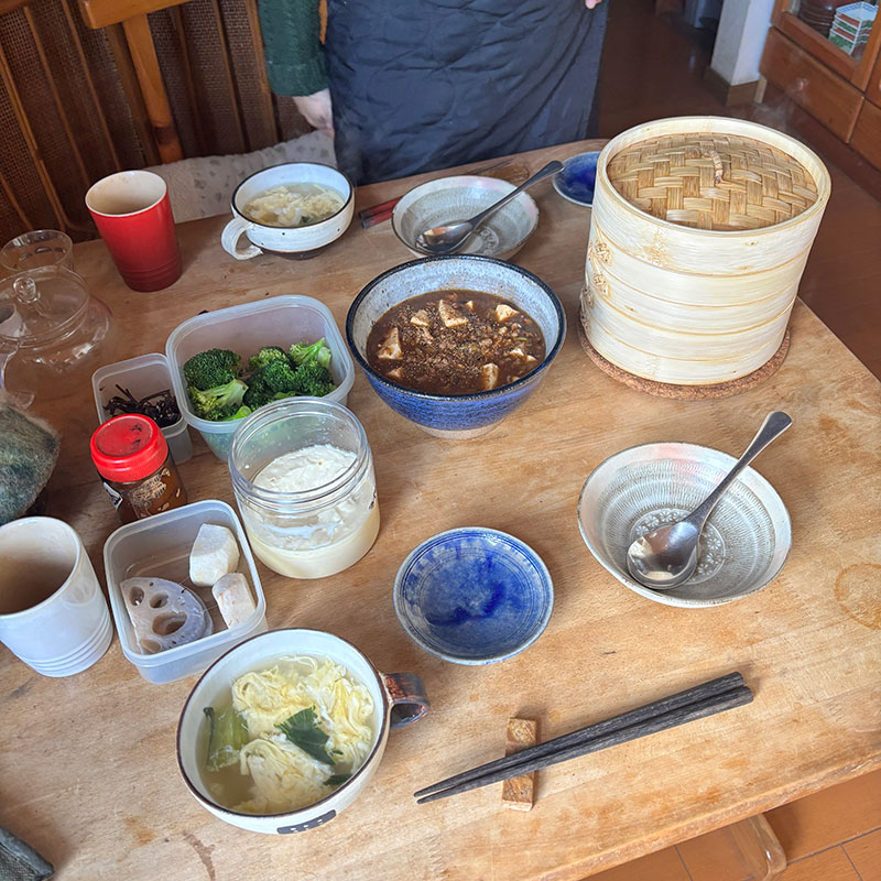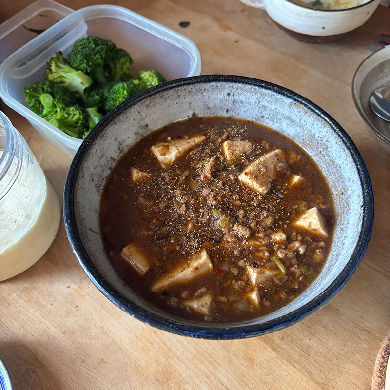 昼飯に麻婆豆腐。この前木綿豆腐で作る酒のつまみのために買った残りが冷蔵庫にあったので。