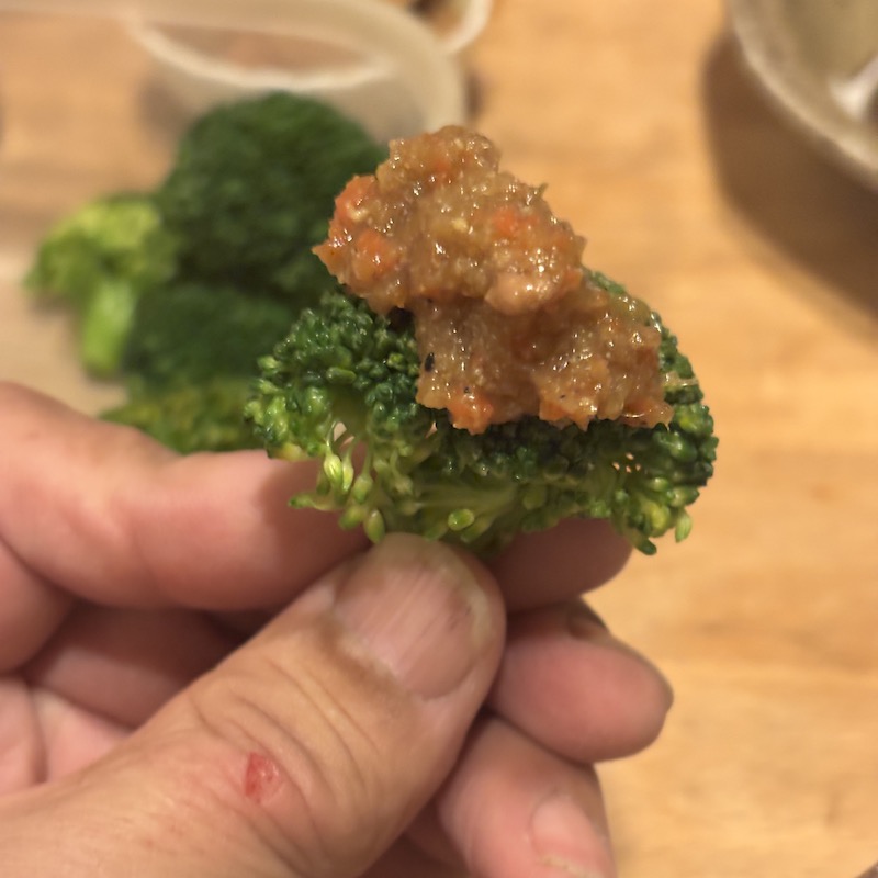 漬けダレはブロッコリーに付けてたべたら美味しい。