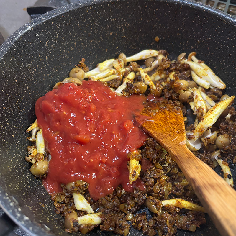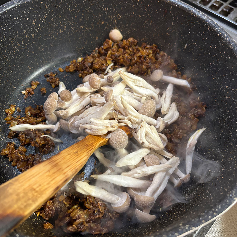 何かきのこを加えるのが定番。今日はしめじ。