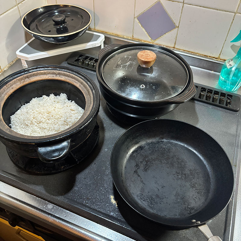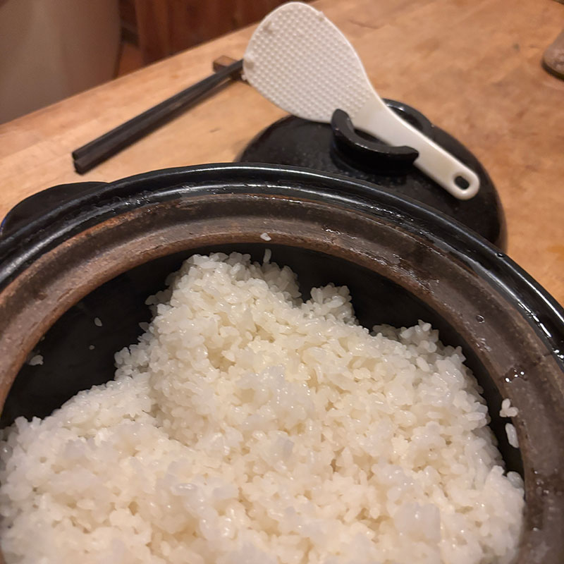蒸籠蒸しを日常的にやり始めたのでそれも土鍋で。炊飯用の土鍋で地元のこしひかり炊いた。