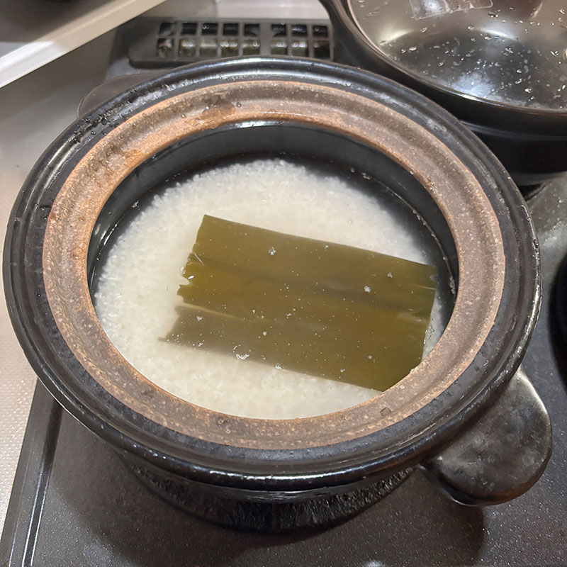 もう3日目なので痛む前に昆布も一緒に入れて炊く。