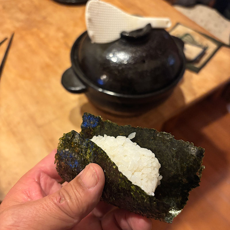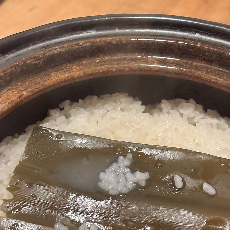 表面のOラインが一番美味しいので土鍋でご飯炊いた時はそこだけよそって海苔を焼いて塩結びにしてる。