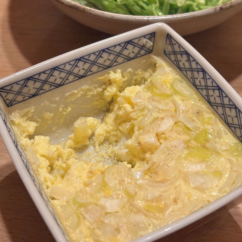 出汁と昆布水と長ネギを混ぜた卵は茶碗蒸しのよう。