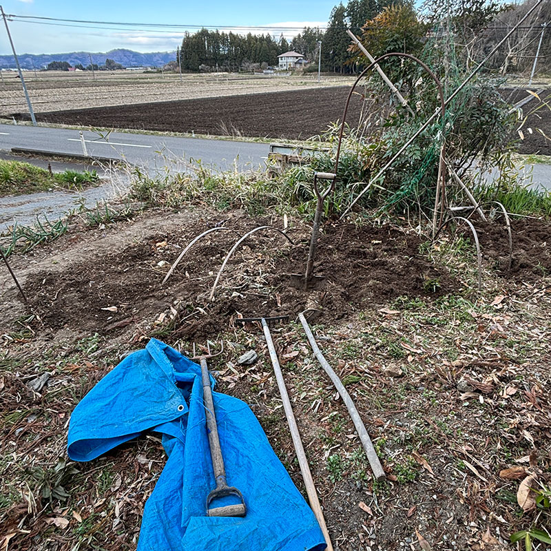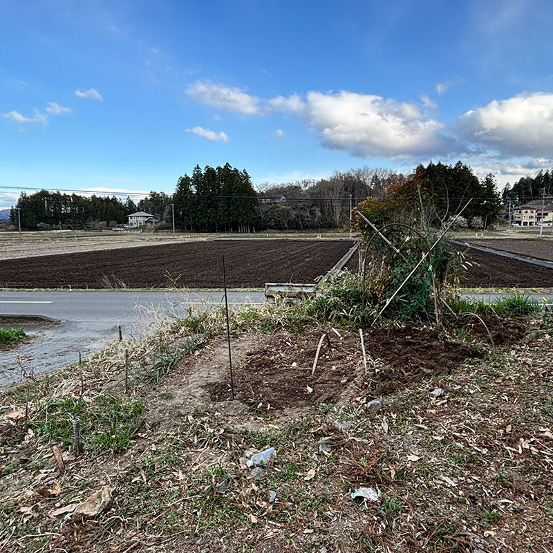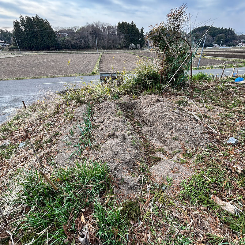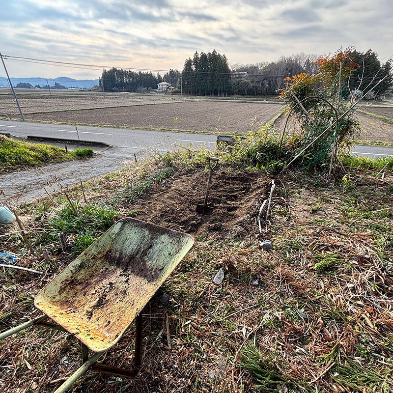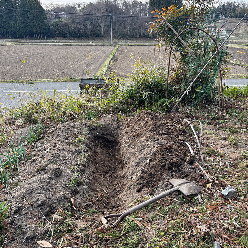 畑に穴を掘って