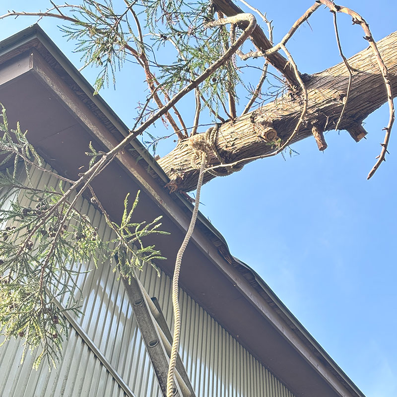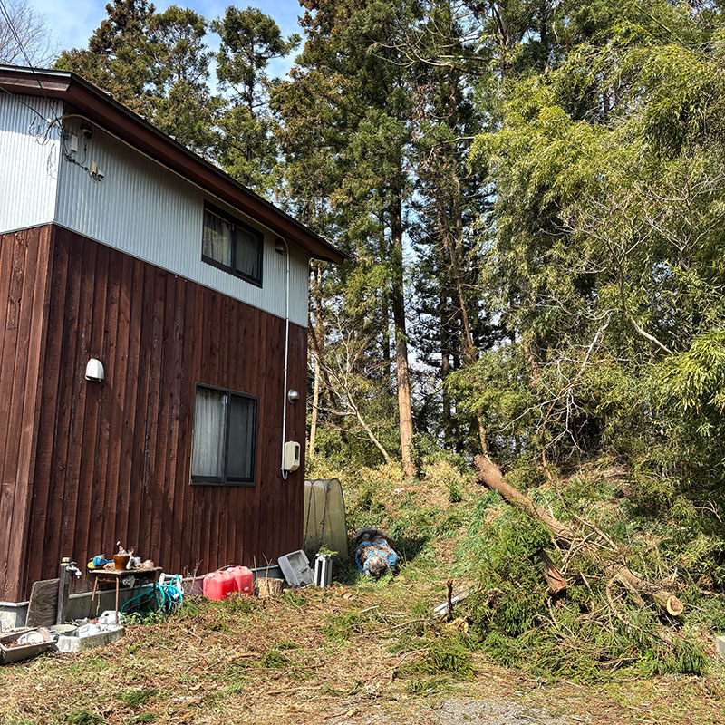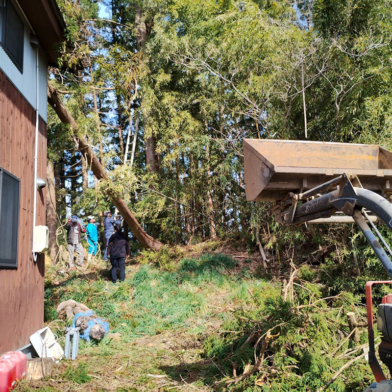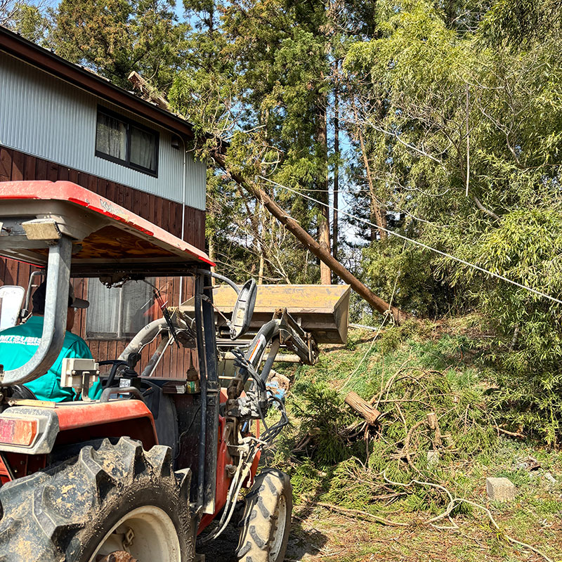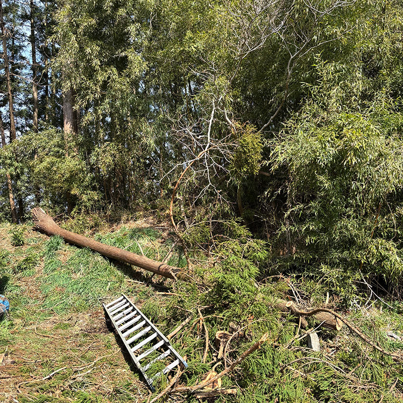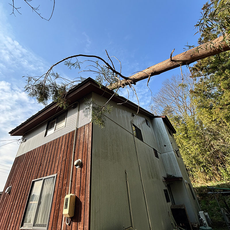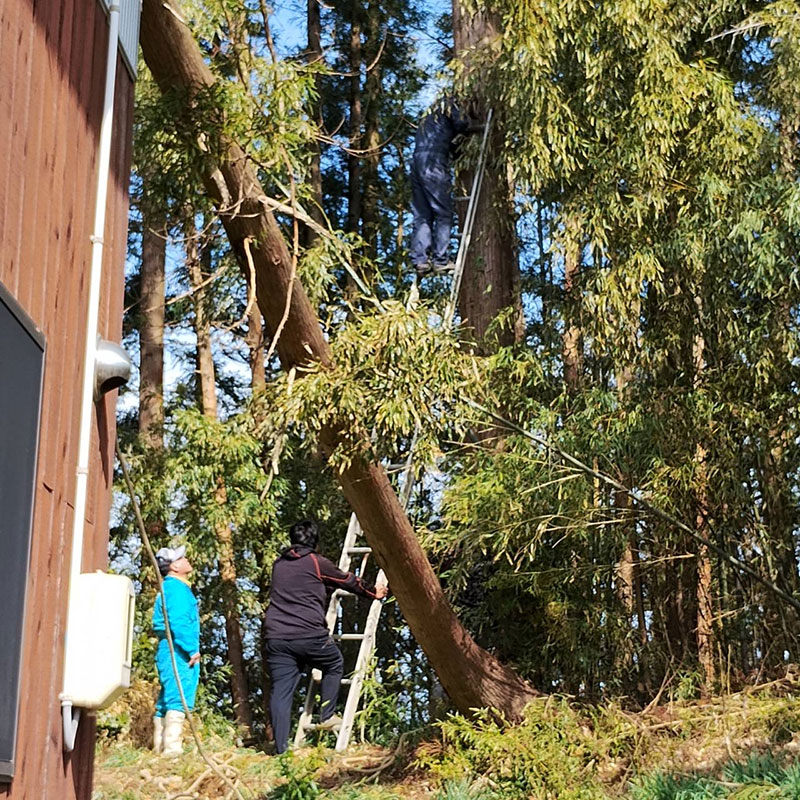 暴風で倒れた杉の木が屋根を直撃した話の続き。お世話になってる方が息子ふたりと木を降ろす手伝いに来てくれた。